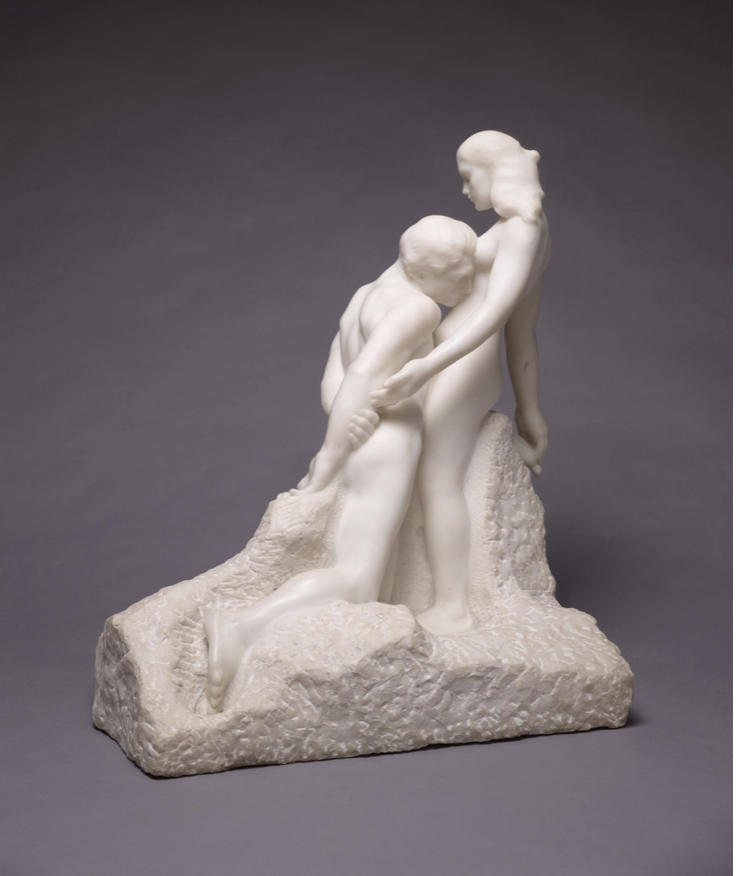 Camille Claudel, 8Dec1864-19Oct1943, was born in northern France and moved to Paris around 1881. When they met, Claudel was 19 and Rodin was 42. Claudel was recognized for her sculpting talent and her beauty. In addition to strongly influencing Rodin’s work, she became Rodin’s muse. Their relationship lasted from 1883 until 1892. After their separation, they developed a rivalry, followed by Claudel, feeling alienated, becoming a recluse. She was committed by her family to a mental asylum and then a psychiatric hospital where she remained for 29 years until her death.